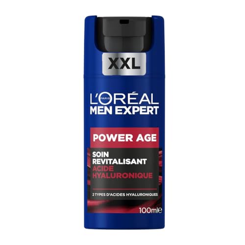 L'Oréal Men Expert - Soin Visage Revitalisant & Anti-Âge pour Homme - À l'Acide Hyaluronique - Pour Tous Types de Peaux - Power Age - Format XXL - 100 ml