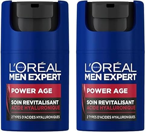 L'Oréal Men Expert - Soin Visage Revitalisant & Anti-Âge pour Homme - À l'Acide Hyaluronique - Pour Tous Types de Peaux - Power Age - 50 ml (Lot de 2)
