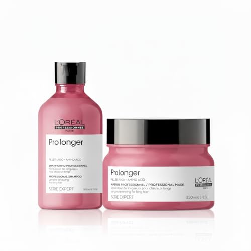L'OREAL PROFESSIONNEL - Routine Pour Cheveux Longs & Cassants - Pro Longer - -69% de Casse & -31% de Fourches - Cheveux plus Forts et plus Brillants - Shampoing (300ml) + Masque (250ml)