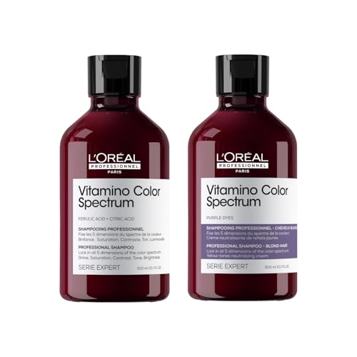 L'OREAL PROFESSIONNEL - Duo Shampoing Neutralisant Cheveux Blonds - Anti-Reflets Jaunes - Protège La Coloration Jusqu'À 100 Jours - Sans Sulfate - Série Expert Vitamino Color Spectrum.