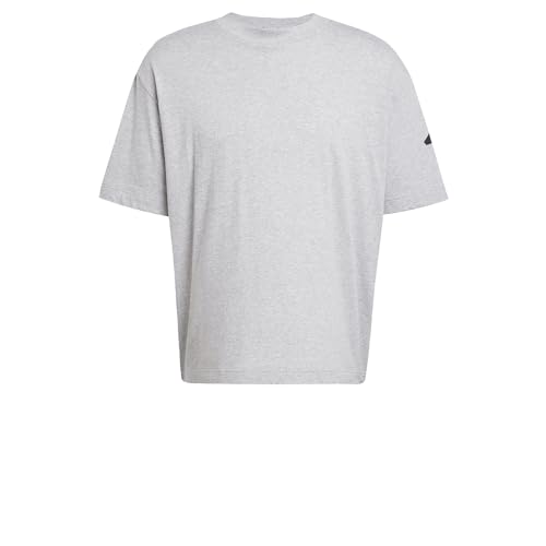 adidas Herren Essentials Lose FIT Three Bar Tee, Medium Grey Heather/Black, S