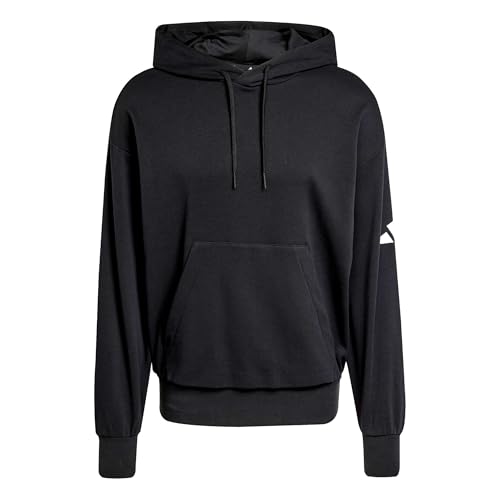 adidas Herren Essentials Lose FIT Three Bar Terry Hoodie, Black/White, L