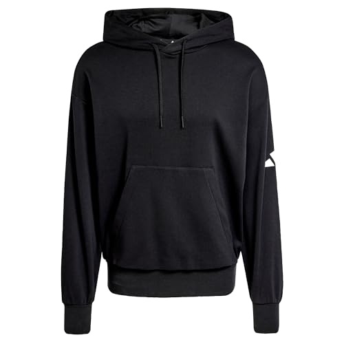 adidas Herren Essentials Lose FIT Three Bar Terry Hoodie, Black/White, XL