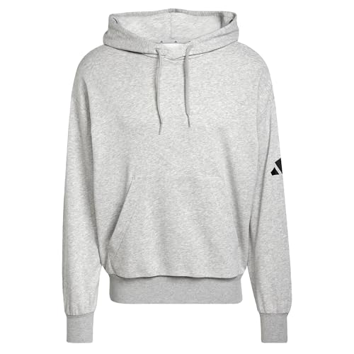 adidas Herren Essentials Lose FIT Three Bar Terry Hoodie, Medium Grey Heather/Black, S