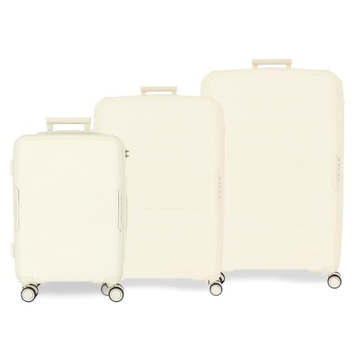 Roll Road Flex Valise rigide fabriquée en ABS, un matériau, fermeture à combinaison latérale, 4 roues doubles, bagage main, intérieur pratique avec un compartiment, nude, Talla única, Lot de 3 valises