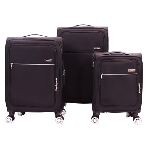 Condotti Casimir – Lot de 3 valises à Coque Souple, légères, durables, Roues rotatives, poignée réglable, Serrure TSA, 55,9 cm, 71,1 cm, 81,3 cm – Noir, Noir, S/M/L, Ensemble de valises de Haute