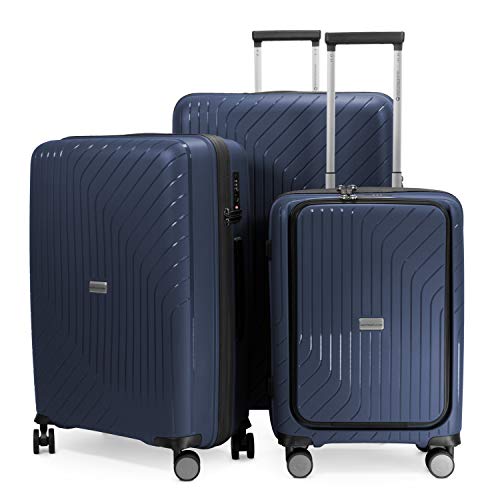 HAUPTSTADTKOFFER TXL - Lot de 3 valises, TSA, Set de Trolley, 4 roulettes, Valise Rigide, Valise à roulettes, Extra Light, Valise de Voyage, (S + Compartiment Ordinateur, M & L), Bleu foncé