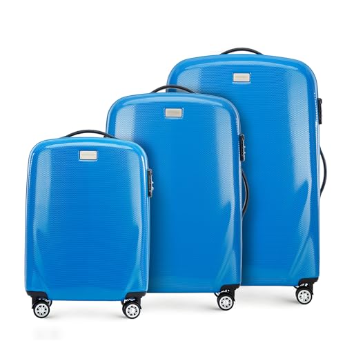 WITTCHEN PC Ultra Light Bagage Rigide Valise de Voyage Valise Trolley Lot de 3 valises en Polycarbonate Quatre roulettes Serrure à Combinaison TSA Manche télescopique en Aluminium Taille (S+M+L) Bleu