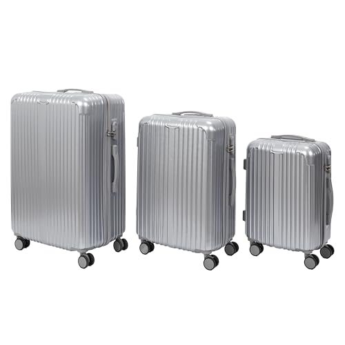 SUITLINE - Lot de 3 valises, Valises de Voyage, Trolley, Valises rigides, TSA, (55 cm, 66 cm, 76 cm), 100% ABS, Mat, Argent