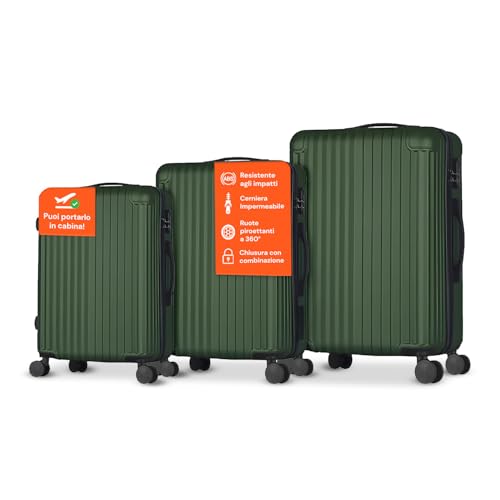 Well Home Lot de 3 valises de 18", 22" et 26" en ABS de Couleur Verte avec Roues Doubles, Vert, Lot de 3 valises