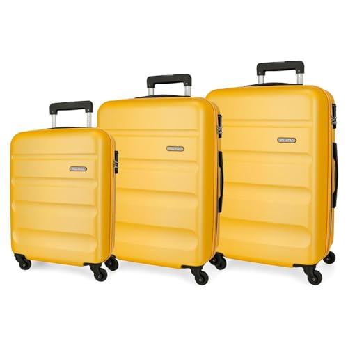 Roll Road Flex Valise rigide fabriquée en ABS, un matériau, fermeture à combinaison latérale, 4 roues doubles, bagage main, intérieur pratique avec un compartiment, ocre, Talla única, Lot de 3 valises