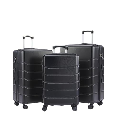 NEWBULIG Lot de 3 valises de Voyage, Extensibles et légères avec Roues rotatives, Serrure TSA, poignée télescopique et matériau ABS Durable, 50,8 cm, Noir, Noir, Tendance