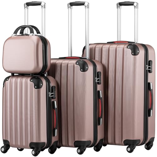 PROVITERA Lot de 3 valises rigides en ABS, valises rigides M-L-XL poignée télescopique et 4 Roues Easy Roll, Serrure à Code, Chariot de Voyage Robuste avec Bagage à Main, 3 + 1 Rose, Moderne