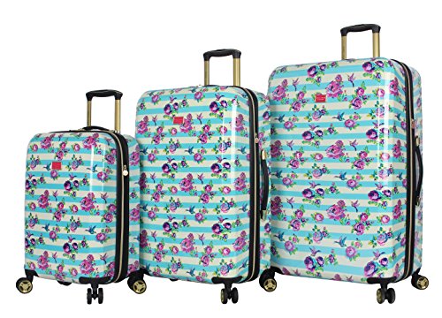 Betsey Johnson – Lot de 3 valises rigides avec roulettes pivotantes (50,8 cm, 66,2 cm, 76,2 cm) (Taille Unique, Support Flamant Rose), Colibri Floral rayé, Carry-on, Medium, Large, Bj0001