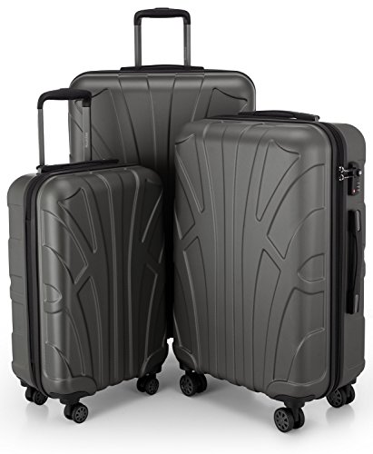 SUITLINE - Lot de 3 valises, Valises de Voyage, Trolley, Valises rigides, TSA, (55 cm, 66 cm, 76 cm), 100% ABS, Mat, Graphite