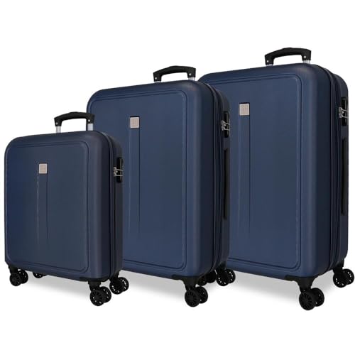 Roll Road Camboya Chariot Cabine Noir 40 x 55 x 20 cm Fermeture à Combinaison ABS Rigide Latérale 37L 3.08kg 4 Roues Bagage à Main, Bleu Marine, 52 x 75 x 30 cm, Lot de 3 valises