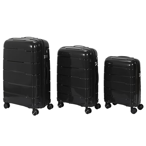 Wings Lot de 3 valises légères avec roulettes et poignée télescopique Noir, Noir, 3 Set, Valise