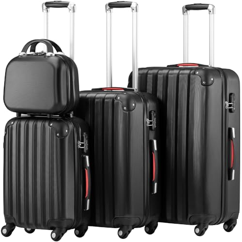 PROVITERA Lot de 3 valises rigides en ABS, valises rigides M-L-XL poignée télescopique et 4 Roues Easy Roll, Serrure à Code, Chariot de Voyage Robuste avec Bagage à Main, 3 + 1 Noir, 45.5 x 28 x 70