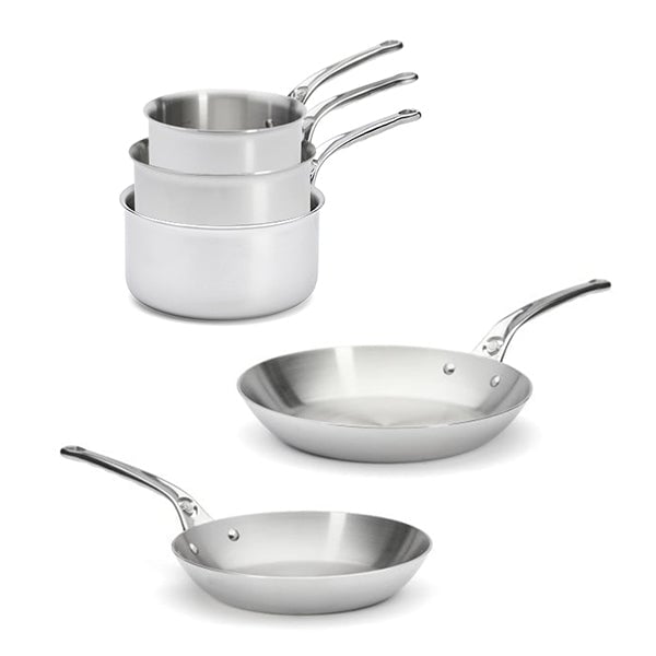 Lot 3 casseroles 16, 18 et 20 cm et 2 poêles 24 et 28 cm tout inox Affinity De Buyer