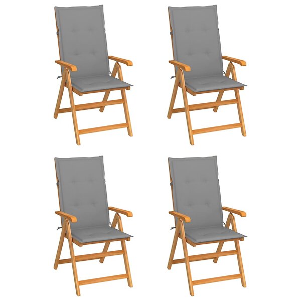 vidaXL Justerbara trädgårdsstolar med dynor 4 st massivt akaciaträ 3065391