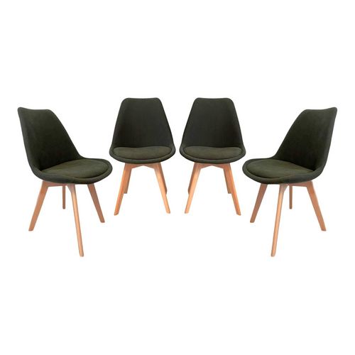 Lot de 4 chaises scandinaves revêtement velours côtelé kaki. pieds bois de hêtre - Nils vert kaki 49 cm