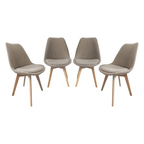 Lot de 4 chaises scandinaves NILS revêtement bouclette taupe. pieds bois de hêtre. chaise 1 place taupe 47 cm