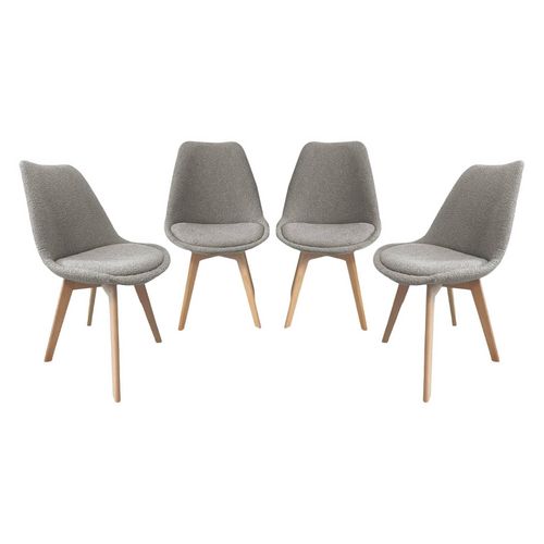 Lot de 4 chaises scandinaves revêtement bouclette texturée gris clair. pieds bois de hêtre - Nils gris clair 49 cm