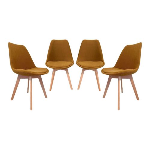Lot de 4 chaises scandinaves revêtement velours côtelé ocre. pieds bois de hêtre - Nils ocre jaune 49 cm