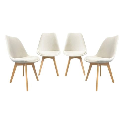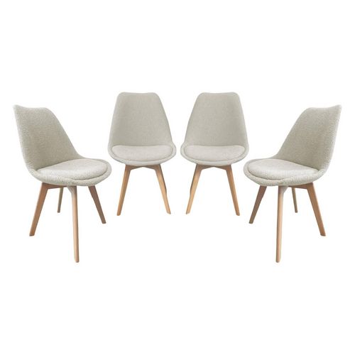 Lot de 4 chaises scandinaves revêtement bouclette texturée blanc. pieds bois de hêtre - Nils blanc 49 cm