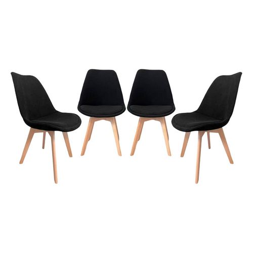 Lot de 4 chaises scandinaves revêtement velours côtelé noir. pieds bois de hêtre - Nils noir 49 cm