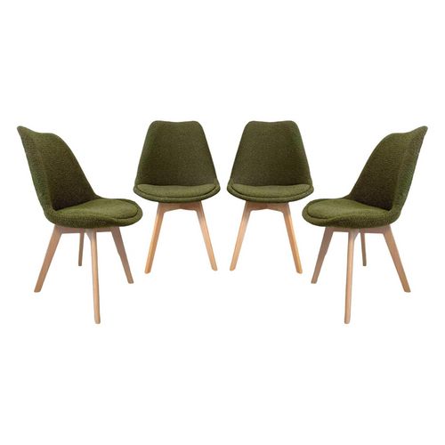 Lot de 4 chaises scandinaves revêtement bouclette texturée kaki. pieds bois de hêtre - Nils vert kaki 49 cm