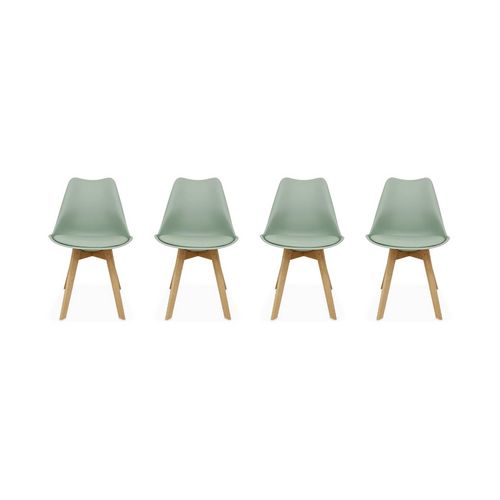 Lot de 4 chaises scandinaves. pieds bois de hêtre. chaises 1 place. vert céladon vert 47 cm