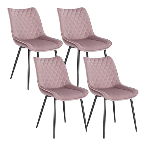 WOLTU Chaise de Salle à Manger Lot de 4, Chaises de Salon Scandinaves, pour Salle de Séjour, Chambre à Coucher, Cuisine, en Velours et Métal, Rose BH209rs-4