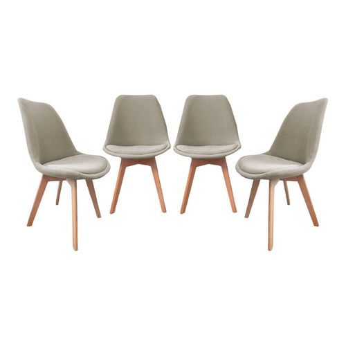 Lot de 4 chaises scandinaves revêtement velours côtelé gris clair. pieds bois de hêtre - Nils gris clair 49 cm
