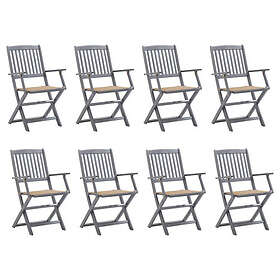 vidaXL Hopfällbara trädgårdsstolar 8 st med dynor massivt akaciaträ 3078295