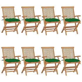 vidaXL Trädgårdsstolar 8 st med gröna dynor massiv teak 3073063