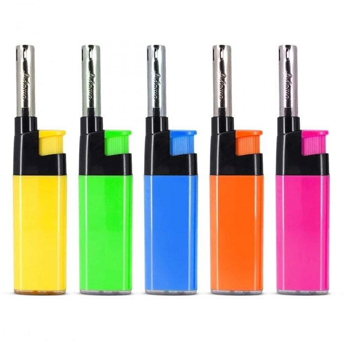 Lot de 5 Briquet - Jet Flamme - Flamme de Couleur Assorti au Briquet - réglable - Rechargeable - 554