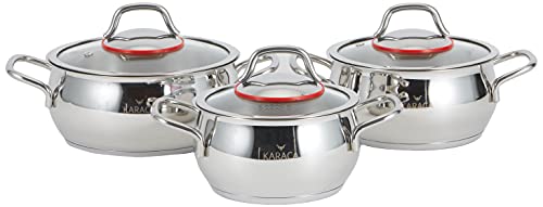 Karaca Emirgan Lot de 6 casseroles en acier inoxydable économes en énergie pour cuisine saine