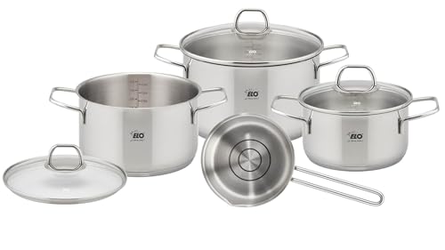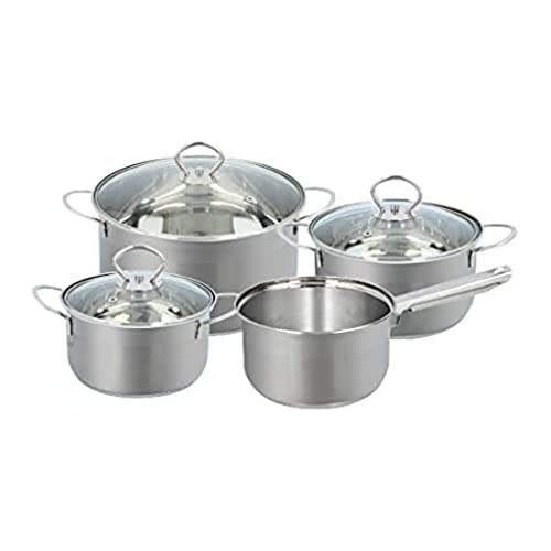 ECHTWERK Lot de 8 casseroles en acier inoxydable de qualité supérieure - Avec couvercle en verre - 3 casseroles et casseroles - Pour tous types de feux - Édition argent