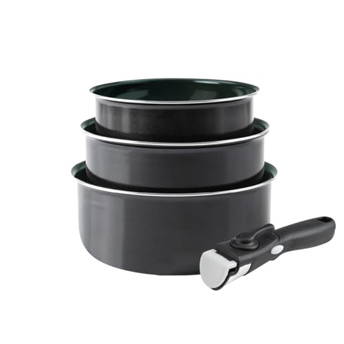 KASANOVA Lot de casseroles à induction Young avec poignée amovible, batterie de casseroles et poêles antiadhésives pour cuisinières, induction et four, avec 2 poêles, 2 casseroles et 2 poignées