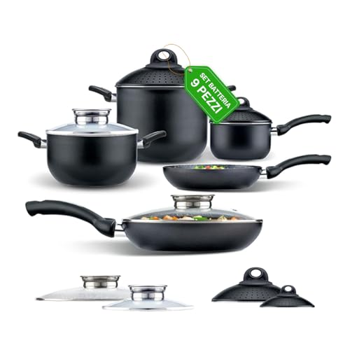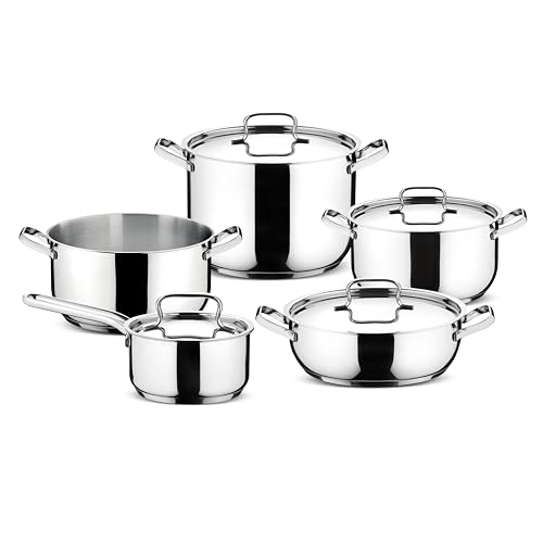 Lagostina Sfiziosa Lot de 9 casseroles avec fond Lagoseal Plus pour tous les étages de cuisson, revêtement en acier inoxydable pour chauffage rapide et cuisson uniforme, design élégant de longue durée