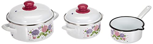 GSW 189989 Hortensia Lot de 7 casseroles en acier émaillé, plastique, blanc