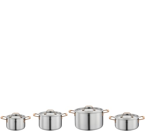 Spring Gourmet Lot de 4 casseroles multicouches avec couvercle en acier inoxydable, passe au four, avec graduation intérieure, marmite Ø 16, 20, 24 cm, marmite Ø 20 cm, or rose
