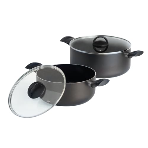 Wintem Lot de 2 casseroles en aluminium avec couvercle en verre 20/24 cm Noir - Poignées ergonomiques pour une prise sûre et confortable - Fond antidérapant et revêtement anti-adhésif - Couvercle avec