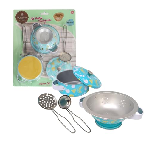 ODS - Maisonelle - Lot de 5 casseroles en métal, avec passoire et 2 ustensiles de Cuisine, 5 pièces, âge recommandé 3 +