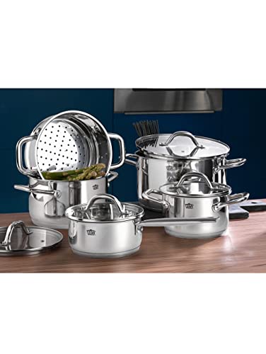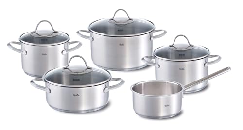 Fissler Palermo Lot de 5 casseroles en acier inoxydable avec couvercles en verre (3 casseroles, 1 casserole, 1 casserole) pour induction