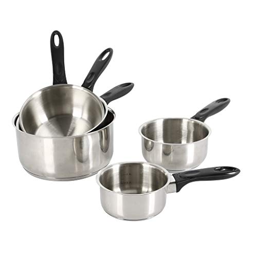 Crealys 501534 Lot de 5 Casseroles Acier Inoxydable Ø12/14/16/18 et 20 cm Gamme ESSENTIAL - Poignée Thermorésistante - Tous Feux dont Induction, Argenté.