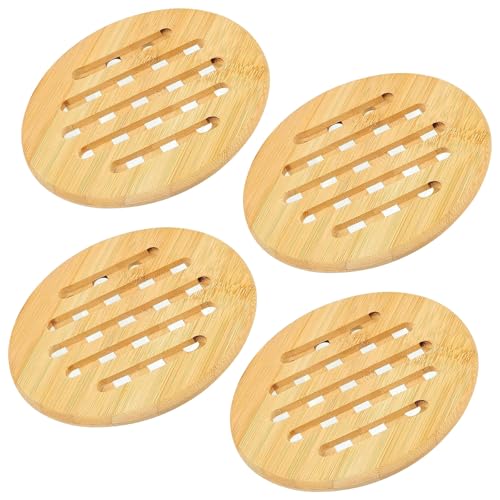 Lot de 4 dessous de plat en bambou antidérapants et lavables - Dessous de plat ronds - Pour cuisine, bol, casserole, poêle, théière et assiette (15 cm)