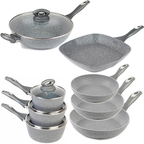 Salter Combo-8572A Lot de 8 poêles anti-adhésives compatibles avec plaques à induction 16/18/20 cm, poêles à frire 20/24/28 cm, wok, poêle à grille, cuisine plus saine avec peu ou pas d'huile, marbre,