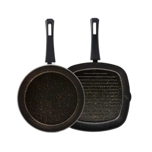 GSW Lot de 3 poêles Gourmet Granit - Set de poêles haut de gamme composé de 2 poêles et 1 poêle grill compatible induction - revêtement antiadhésif - aluminium